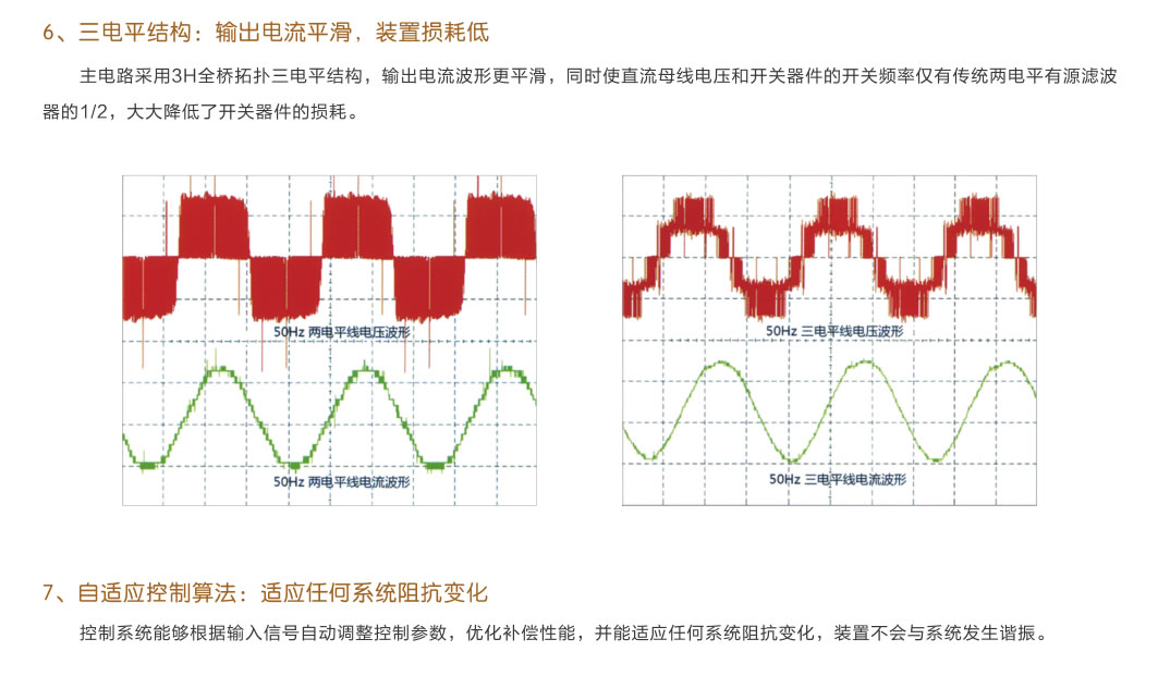 The main circuit of the complete set of active power filter device is an IGBT power converter, which adopts the detection technology of instantaneous reactive power theory to automatically track the harmonic changes of the power grid, and has a high degree of controllability and rapid response. It overcomes the shortcomings of poor filtering effect of traditional passive filtering devices, prone to resonance, and can only compensate for fixed sub-harmonics, and can play a good filtering and compensation effect on various fast transient impact loads.