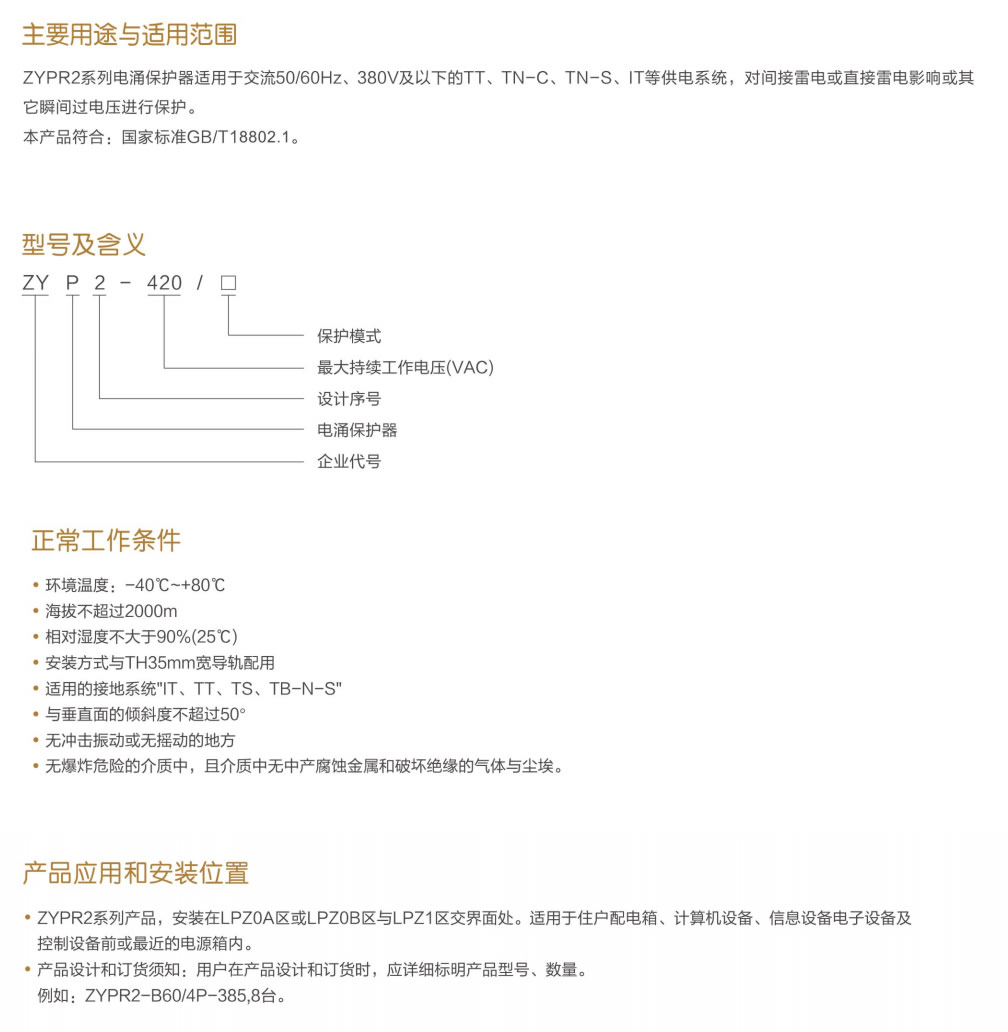 Zypr2 remote signaling series surge protector is suitable for power supply systems such as TT, TN-C, TN-S, it, etc. with 50/60hz, 380V and below, and protects indirect lightning and direct lightning or other transient over-voltage surge.