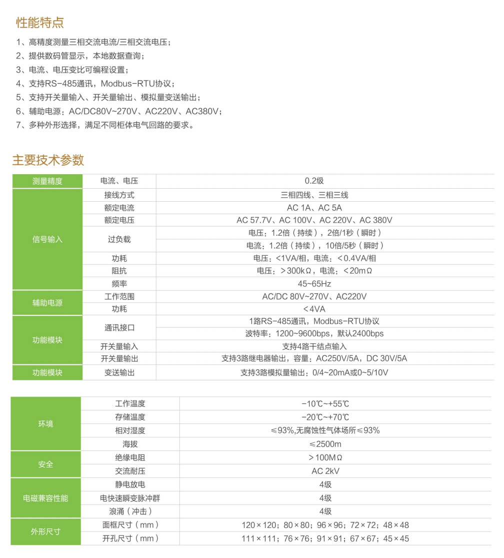 1. high precision measurement of three-phase AC current or three-phase AC voltage