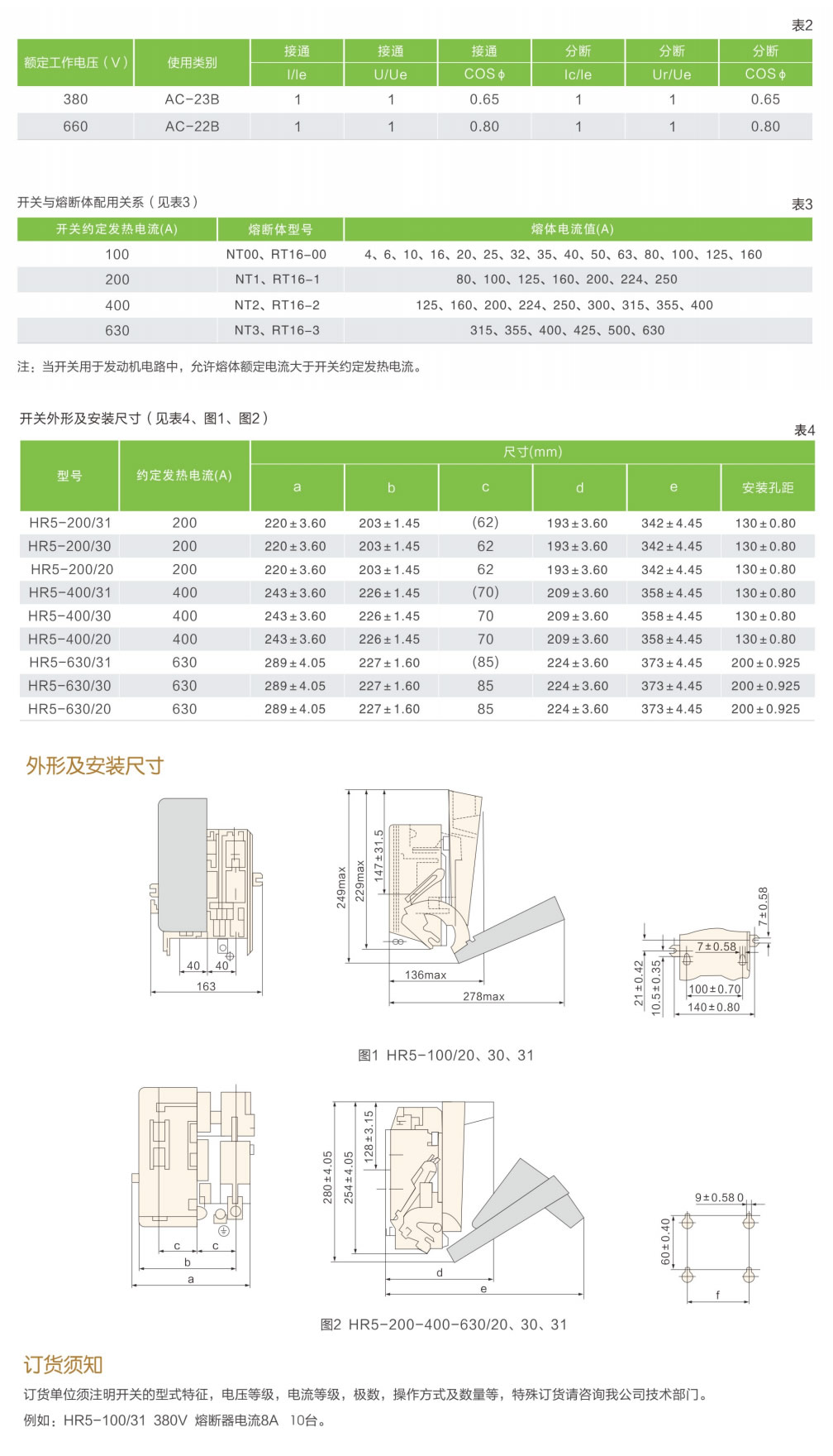 Hr5 series fuse type disconnector is mainly used in distribution circuit and motor circuit with rated voltage of 380V and 660V (45 ~ 62Hz) and heating current up to 630A. It is used as power switch, disconnector, emergency switch and circuit protection, but it is generally not used to directly open and close a single motor.