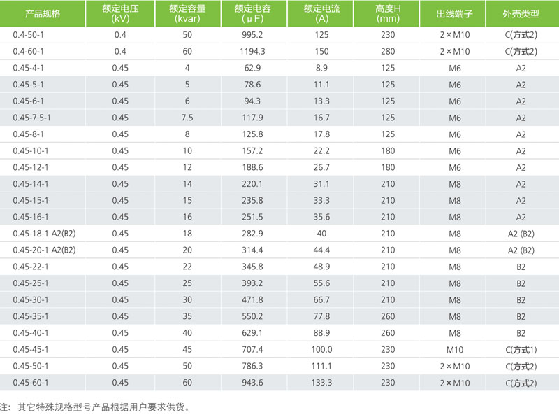 額定容量:0.4-0.69kv的1-60kvar,其他電壓等級的容量另定。
