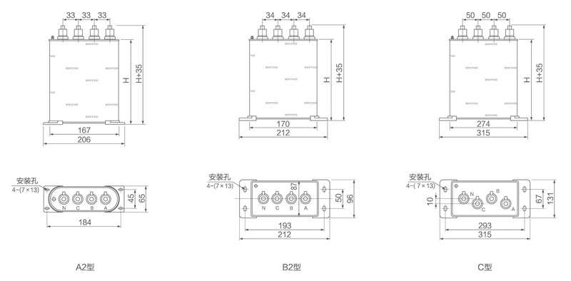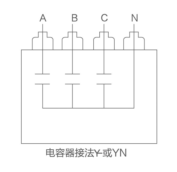 1、三個(gè)單相電容器,接成Y-中性點(diǎn)引出(標注N端子),即構成三個(gè)單相共體電容器。使用時(shí),AN、 BN、 CN各為獨立單元。