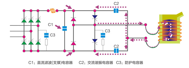 諧振電容器用于中低頻加熱,熔煉諧振感應電源交流側諧振及補償。