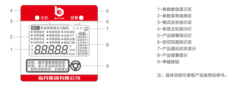 采用液晶大屏幕全中文顯示器和按鍵實(shí)現人機聯(lián)系。液晶顯示器上實(shí)時(shí)顯示網(wǎng)絡(luò )狀況及電容器運行數據:包括無(wú)功功率、系統功率因數、 電壓、電流、電容器電流、諧波畸變率、電容容量、電容器體內溫度、CT變比,聯(lián)機臺數等。
