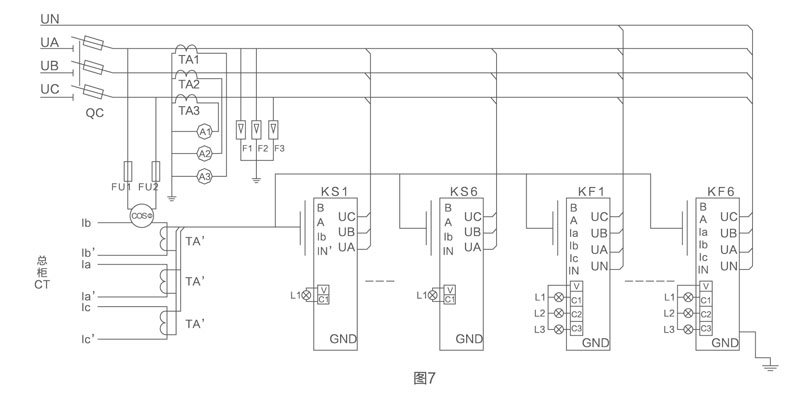 低壓成套柜三相補償應用電氣接線(xiàn)圖(有控制器)