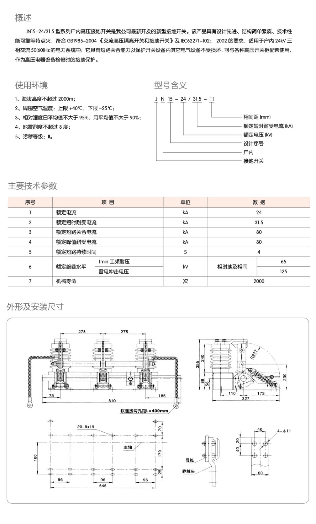 JN15-24/31.5戶(hù)內高壓接地開(kāi)關(guān)