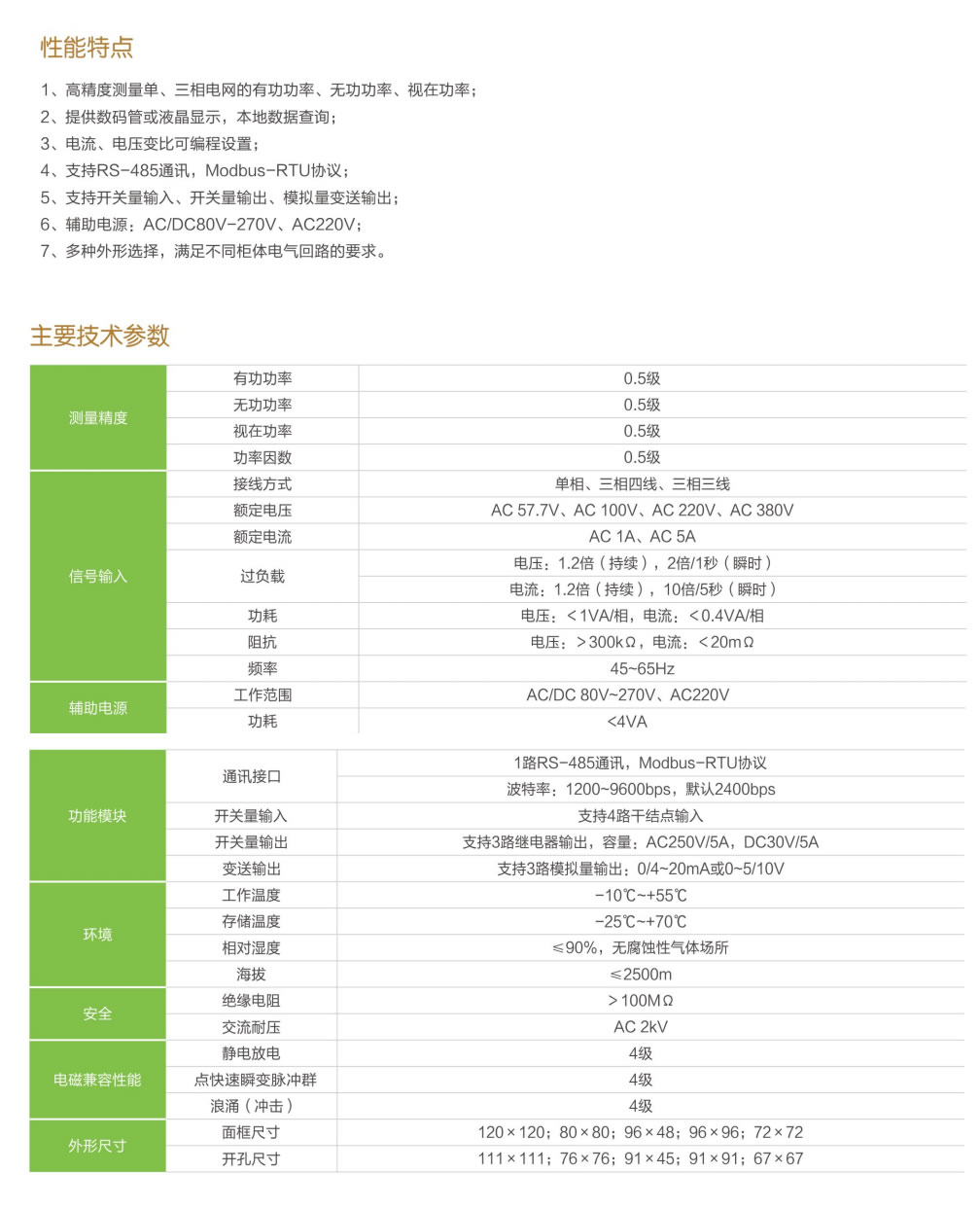 1.高精度測量單、三相電網(wǎng)的有功功率、無(wú)功功率、視在功率;